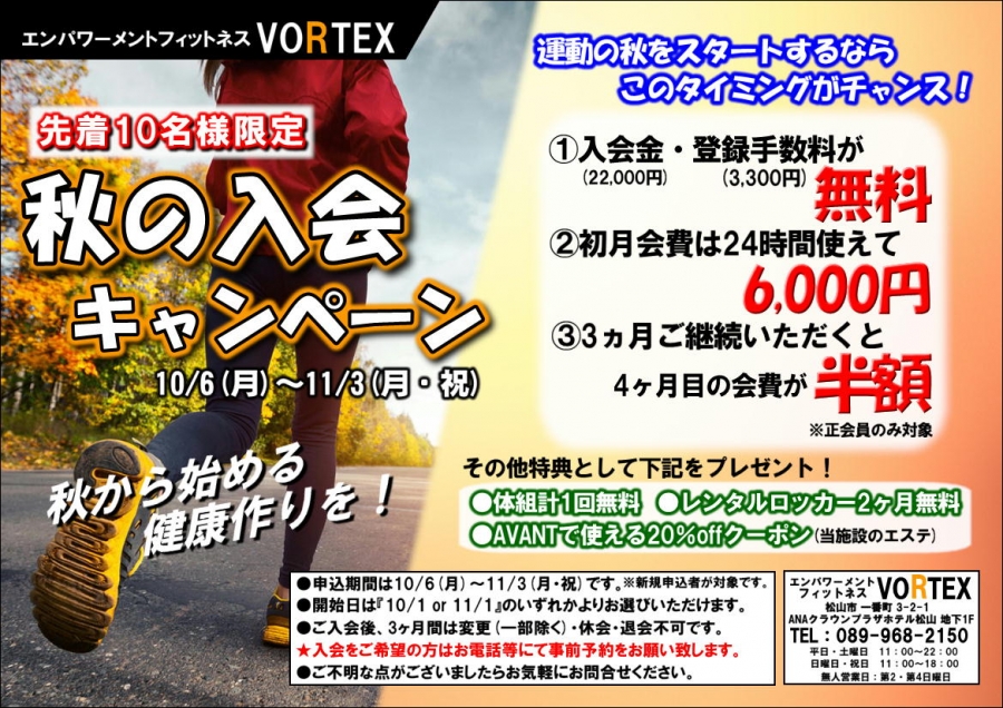 【秋から始める健康作りを!】〜2025年 秋の入会キャンペーン実施中!〜