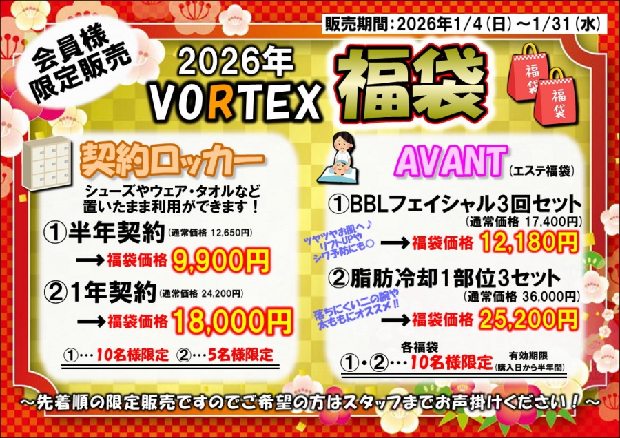 今年も【契約ロッカー】と【AVANTのエステ福袋】をご用意!