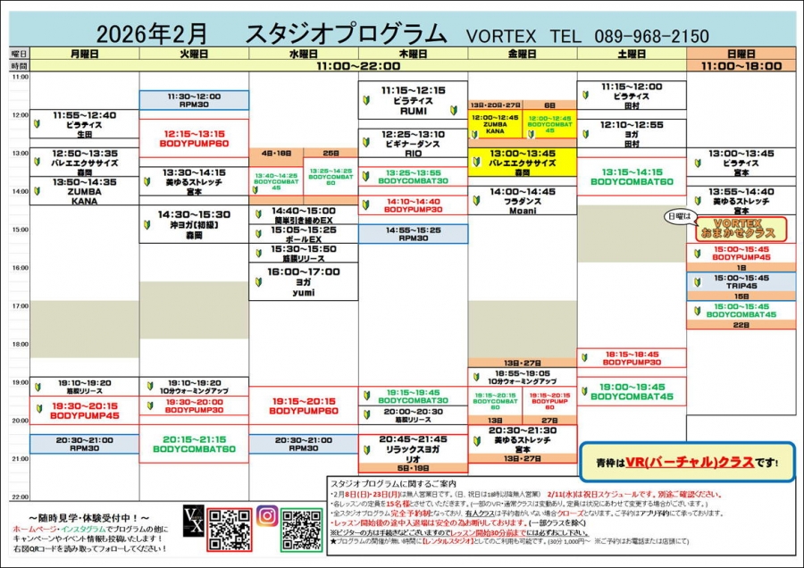 【温かさは運動から!】〜2026年2月 スタジオスケジュール〜