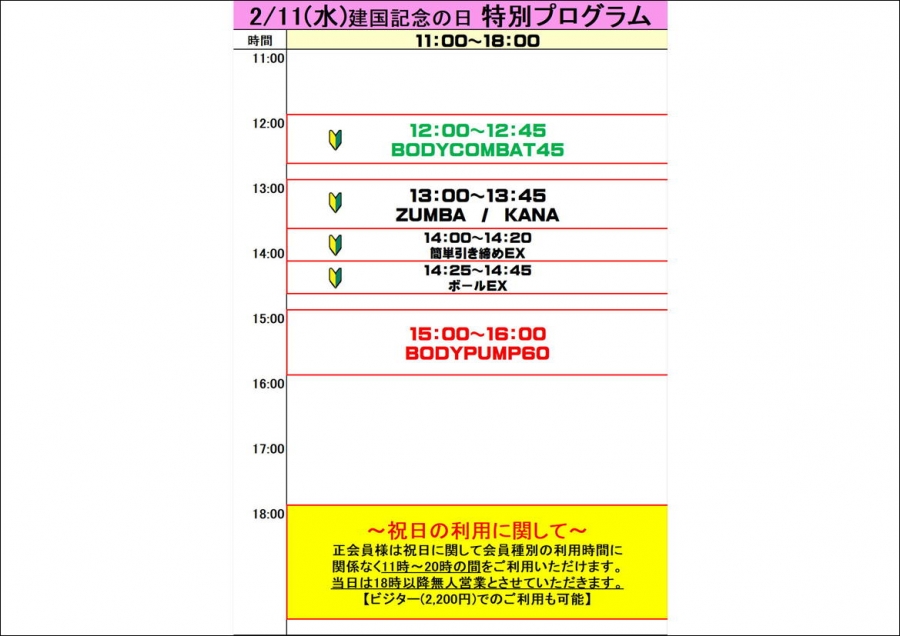 続いて2/11(水)の祝日スタジオスケジュールです!