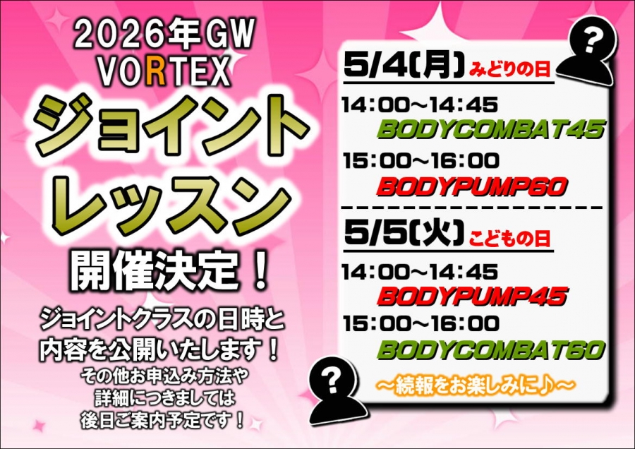 さてそのGWにてVORTEXでジョイントレッスンを開催することが決定いたしました!
