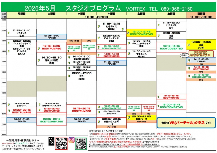 祝日はVORTEXジョイントクラスも同時に開催いたします!