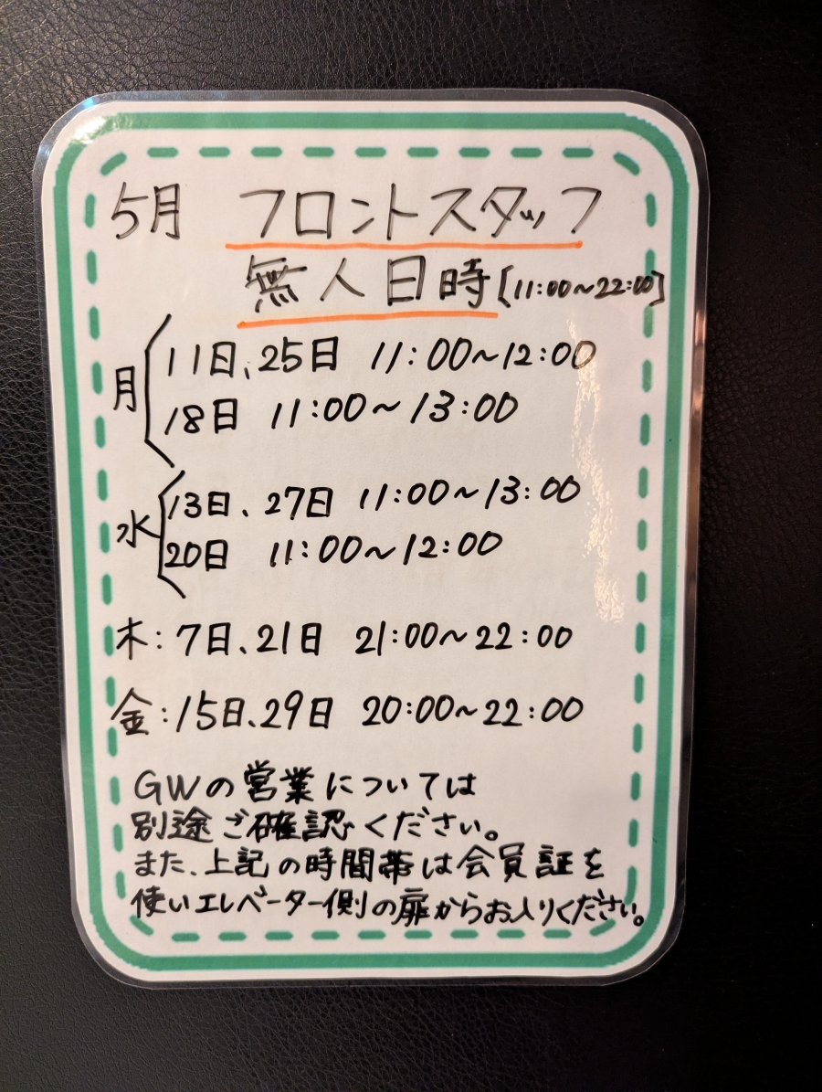 無人営業日:第2、第4日曜日
